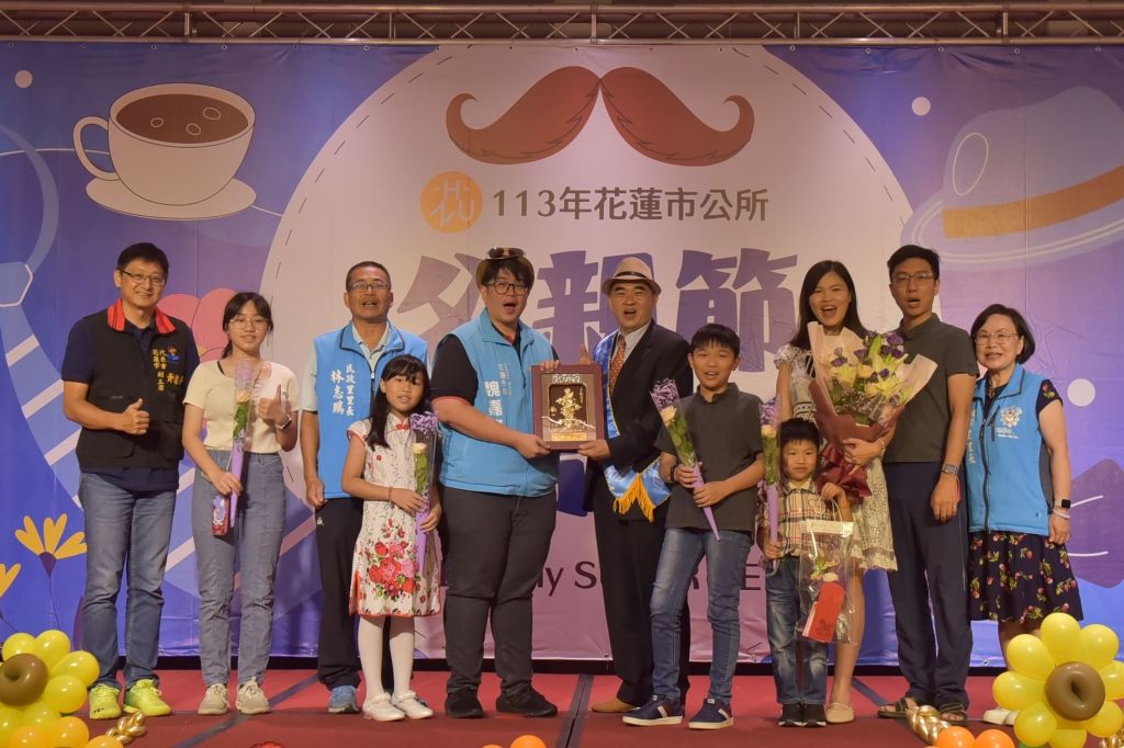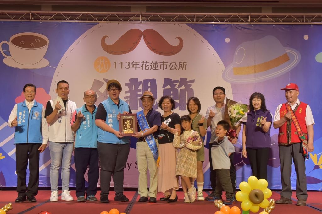 花蓮市公所今天27日在美侖大飯店舉辦113年度父親節表揚大會,共有46人獲獎表揚。市長魏嘉彥到場為父親代表們祝福,肯定他們對家庭和社會的貢獻,也盼藉由公開表揚活動,鼓勵為人子女者即時行孝,大聲說出對爸爸的愛與感恩。