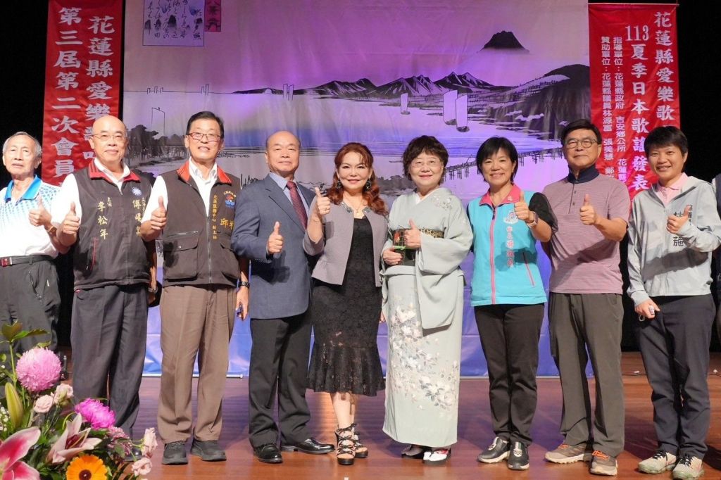花蓮縣愛樂歌唱協會今28日於吉安客家文化演藝堂,舉辦第十二場欲罷不能的「日本歌謠研習成果」發表會,50餘位長青會員身著各式和服搭上創意裝飾,讓活動彷彿有親歷日本國參加演唱會的臨場感,忘齡優雅的儀態加上優美傳唱的歌聲演出,讓高朋滿座的觀眾欣賞到驚喜的異國風情曲。理事長曾玲珍致詞感謝著許多的貴賓、議員和贊助的好友之外,其中更感謝吉安鄉公所鄉長游淑貞長期以來給予支持,歷年都是在阿美文化館舉辨,鄉長總是場場親臨給學員們加油,今首次移師到吉安客家文化演藝堂,竟也座無虛席加油觀眾爆滿,呈現愛樂歌唱協會的歌謠研習活動,再次獲得莫大的鼓勵和肯定 。
