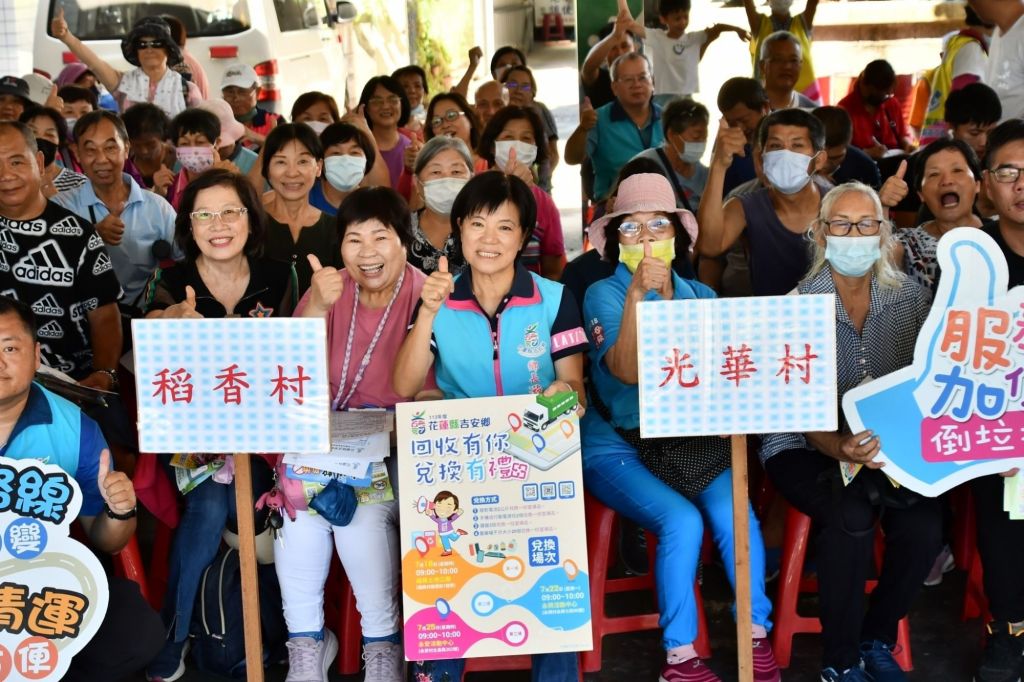 吉安鄉力推全民行動做環保,鼓勵鄉親積極落實資源回收分類,分別在吉 安鄉三選區境內,舉辦三場「回收有你、兌換有禮」活動,首於7月18日福興土地公廟、次於7月22日永興活動中心,最後場將於8月1日在永安活動中心辦理。活動時間為上午9時至10時,民眾可攜帶所指定的四類回收品項與規定數量,如廢電池2公斤、手機或行動電源2個、鍵盤2個、農藥罐不分大小20個,即可現場兌換實用生活好禮,前兩場皆吸引鄉親踴躍響應,更印證鄉親環保意識抬頭、生活落實回收分類工作,游淑貞邀請鄉親們,若前兩場尚未兌換者,可於第三場永安村活動中心兌換,一起做好回收換好禮,為永續家園齊心努力。