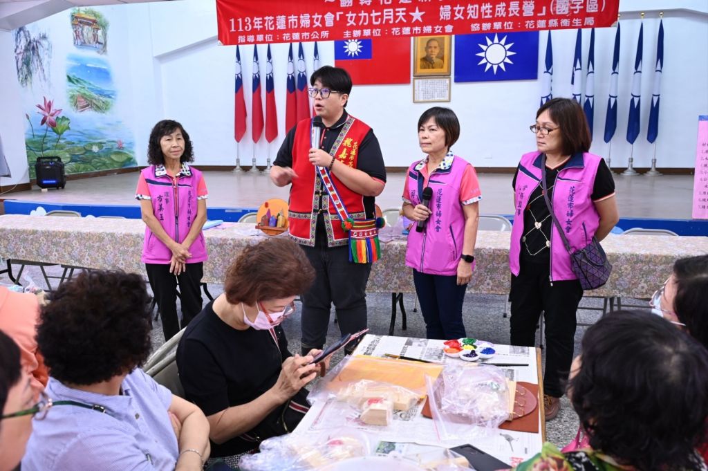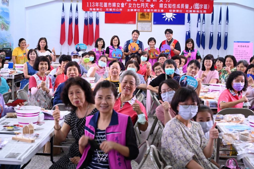 花蓮市婦女會日前在國民黨花蓮縣黨部二樓會議室舉辦113年『女力七月天 婦女知性成長營』,活動內容豐富又精采,三場次吸引了三百餘名婦女朋友參加,透過衛教宣導長知識,也動動手做手作。市長魏嘉彥、議員魏嘉賢、代表會主席李振瑋都到場,與姊妹們一起度過了一個愉快且知性的周末時光。