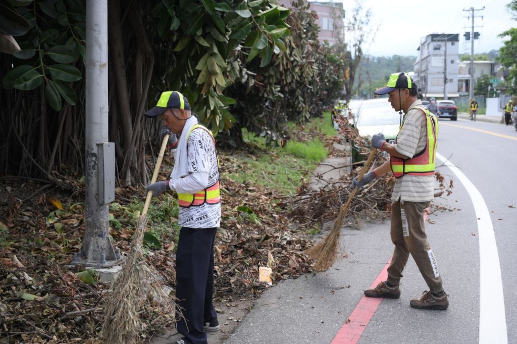 清潔隊長吳慶展表示,許多大型樹幹殘枝在清潔隊完成清運後,仍會留下許多落葉,必須依靠人力沿街清掃,在清潔隊人員有限的情況下,特別感謝地方社區和社團志工一同共襄盛舉。