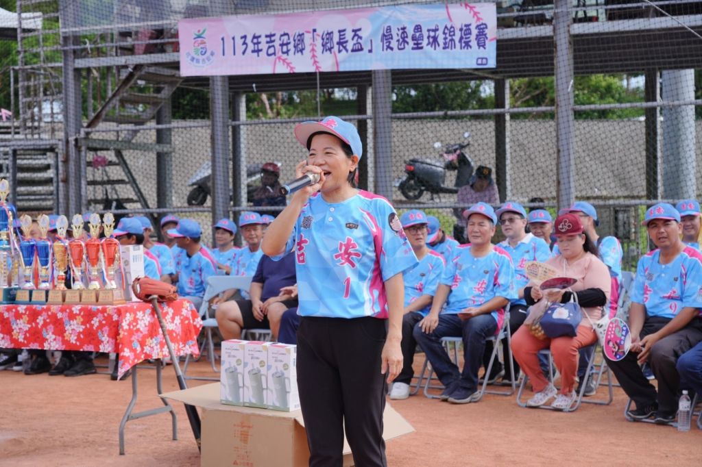 吉安鄉「第一屆鄉長盃慢速壘球錦標賽」,在花蓮縣體育會盛大籌辦下,於國福棒壘球場展開精采賽事,鄉長游淑貞偕同主管與代表會邱美雲主席團隊及各村長,率二十七支球隊近千位球友開賽,經歷二天激烈淘汰進階大賽後,「吉安鄉慢壘隊」不負眾望,勇奪公開組「冠軍盃」。