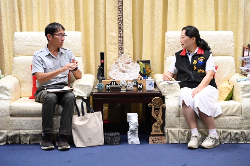 太魯閣國家公園管理處新任處長劉守禮今(11)日拜會花蓮縣政府,由縣長徐榛蔚接見,雙方針對推展太魯閣國家公園人文風情之可能進行暢談,徐縣長再次強調,花蓮依舊美好,誠摯歡迎全國鄉親朋友到花蓮玩!