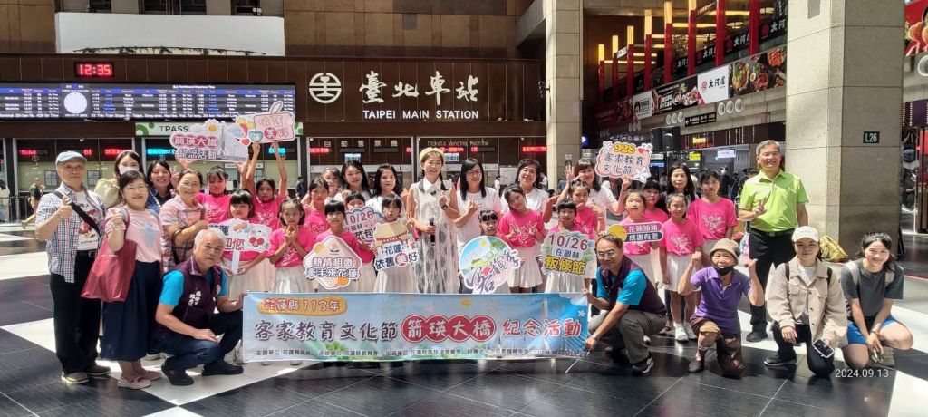 9月是感懷師恩的季節!為表揚績優客語薪傳師,花蓮縣政府客家事務處今(113)年於9月28日教師節特別在有「校長的故鄉」美名的鳳林鎮辦理「客家文化節」,為讓花蓮客家走出花蓮、擁抱人群,同時9月13日在台北火車站辦理「快閃活動」宣傳花蓮客家文化,展現客家人堅忍樂觀的精神,花蓮依然美好,歡迎大家來花蓮感受客家新文化。