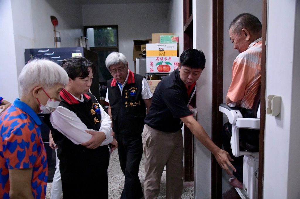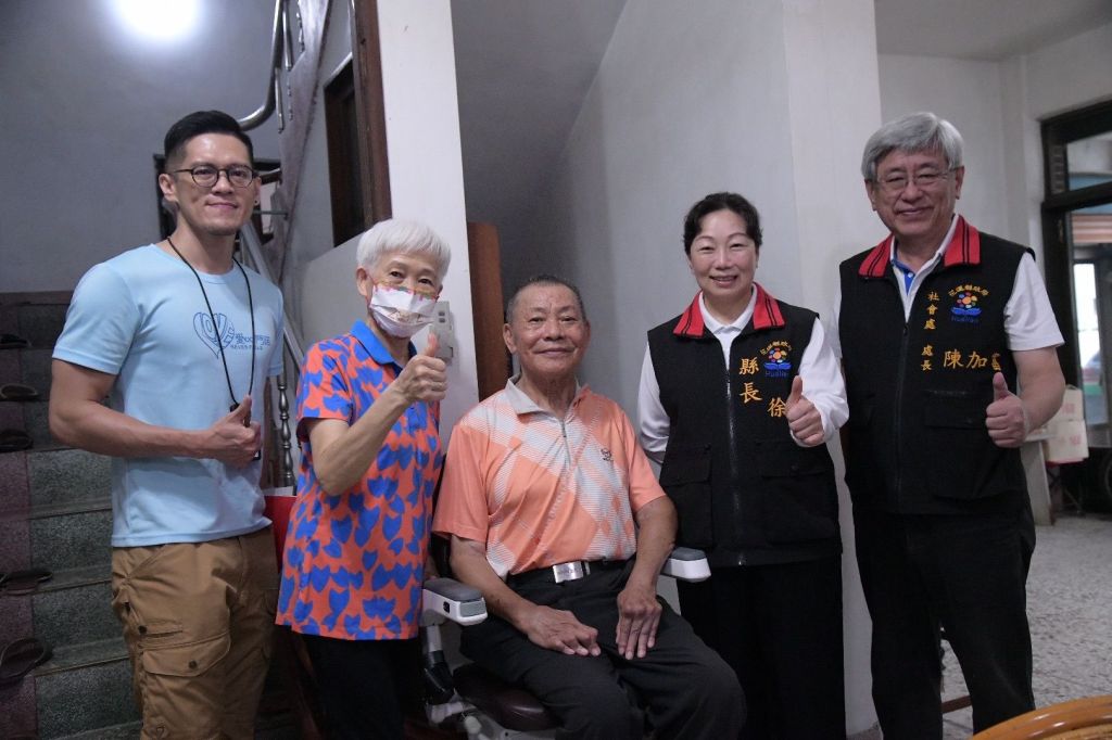 花蓮縣政府重視偏鄉身障及老人輔具需求,縣長徐榛蔚為關懷身障者居家輔具使用情形,今(18)日在社會處長陳加富陪同之下,親自至壽豐鄉林爺爺家中訪視關心,實地勘察升降機所帶來的便利性,並由廠商業務經理親自說明輔具便利性安全及保護性能。