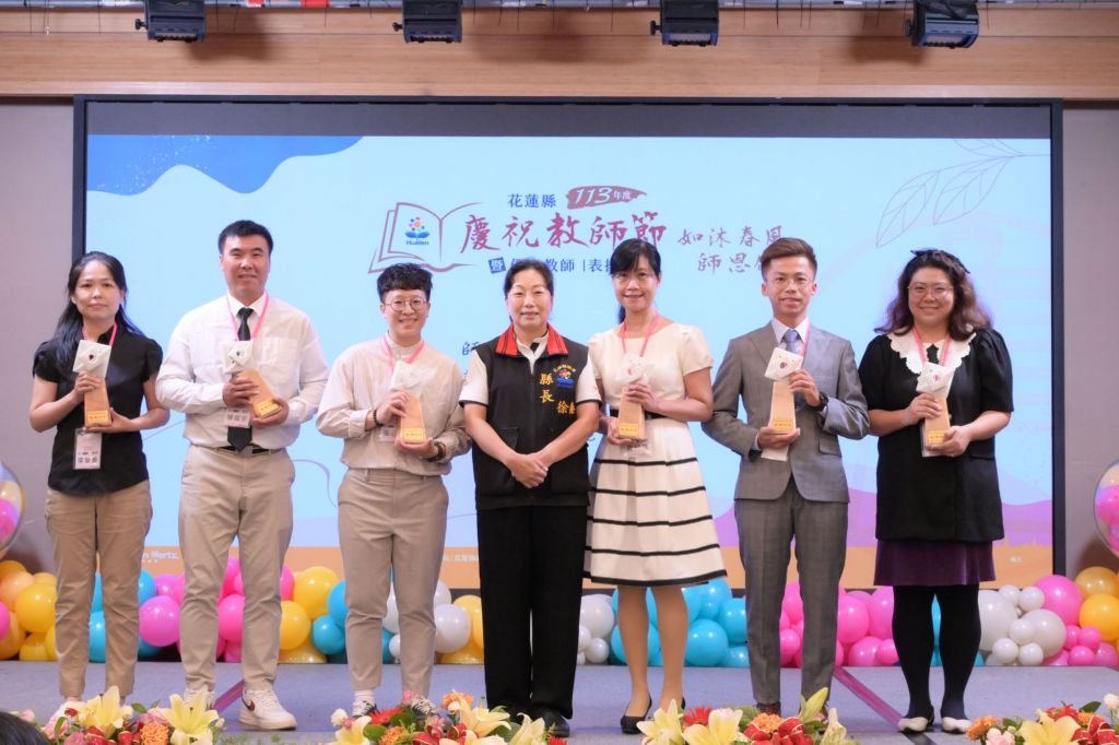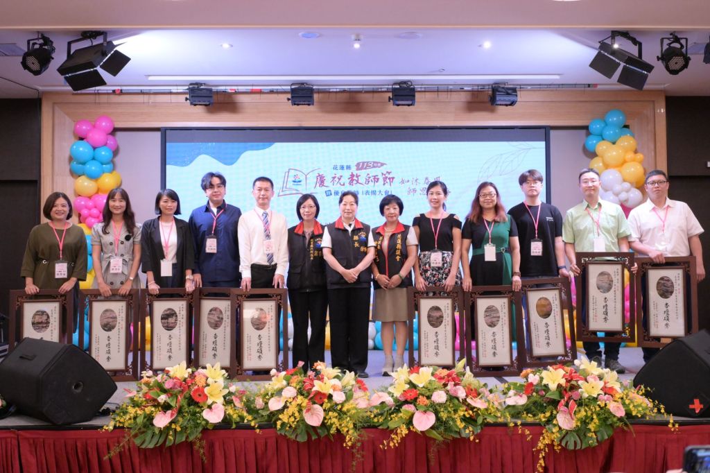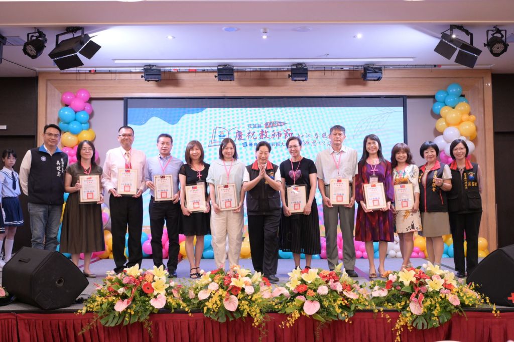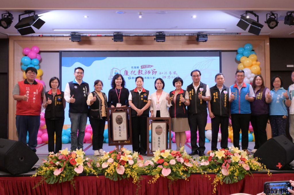 花蓮縣113年教師節暨優良教師表揚大會今(19)日在花蓮褔容大飯店舉辦,來自全縣294位教師齊聚一堂,接受各界的感謝與祝福。縣長徐榛蔚在教育處代理處長翁書敏陪同下,到場向教育界優秀夥伴們致意,親自頒贈感謝狀,感念終年辛勞的老師,並期許所有教育工作者持續成長,懷抱教學相長之熱忱,為教育之百年大業共同努力。