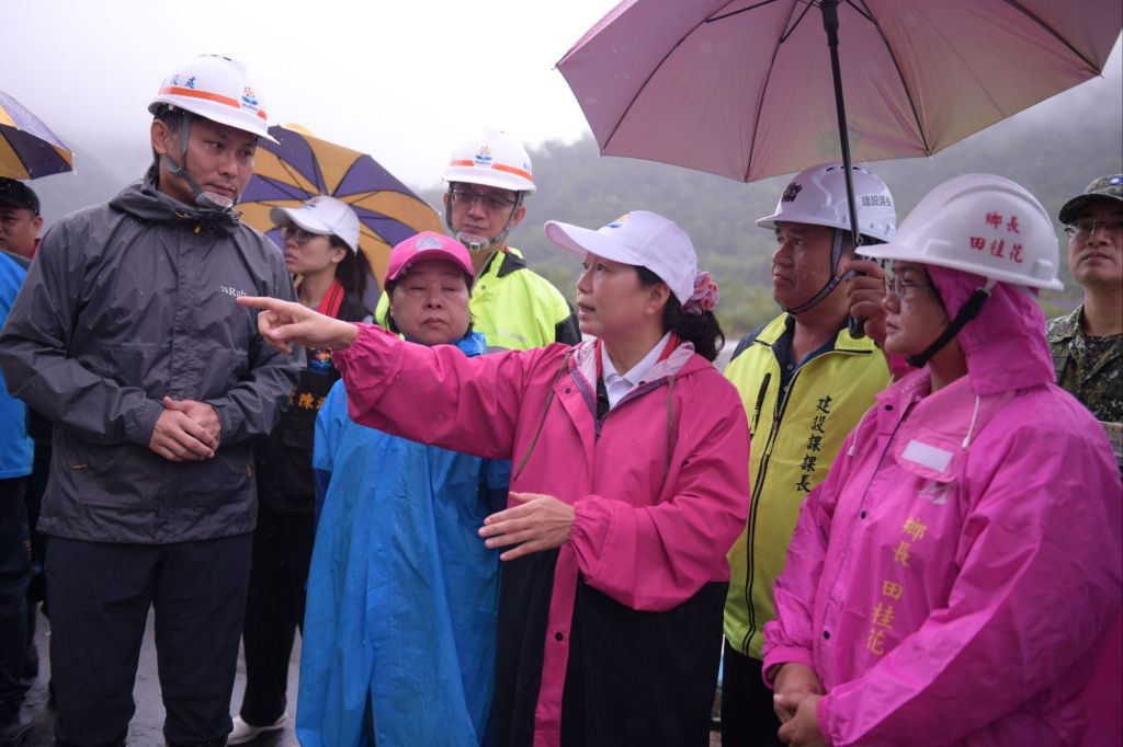 因應山陀兒強烈颱風來襲,縣長徐榛蔚相當關心花蓮鄉親安危與生計,今(1)日在縣府團隊及相關單位陪同下,前往花蓮南區視察,陸續會勘包含凱米颱風花73線1k+500災後復建工程、海葵颱風花75線16k+600邊坡坍方整治工程、崙天大橋便道、蚊子洞橋、高寮大橋便道等地。徐縣長要求相關單位密切注意災區情況,嚴防颱風侵襲造成更大的災害。