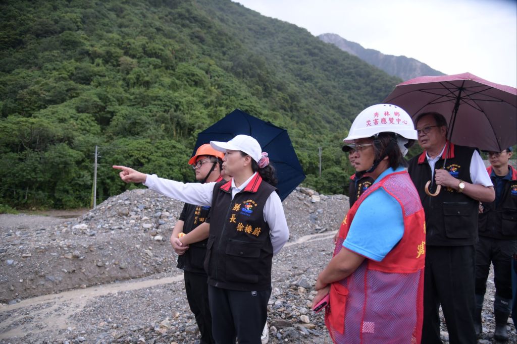 因應山陀兒颱風來襲,花蓮縣長徐榛蔚相當關心花蓮鄉親安全,今(3)日在縣府團隊、秀林鄉長王玫瑰、秀林鄉民代表會主席駱燕玲及花蓮縣後備指揮部指揮官伍中慶等人陪同下,前往花蓮縣秀林鄉三棧村視察,會勘包括三棧國小、三棧溪、三棧南溪及附近野溪。徐縣長要求相關單位密切注意災區情況,嚴防颱風侵襲造成更大的災害。