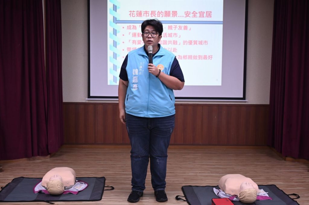 為了推廣民眾急救技能,花蓮市公所辦理三場CPR+AED訓練課程,邀請紅十字會花蓮支會講師蔡競麟為市公所同仁講解及示範教導如何實際操作。市長魏嘉彥也親自示範急救技巧,他表示,希望透過不斷的訓練,讓每一位同仁都有急救的技能與技巧,在面臨突發狀況狀時,都能立即派上用場。