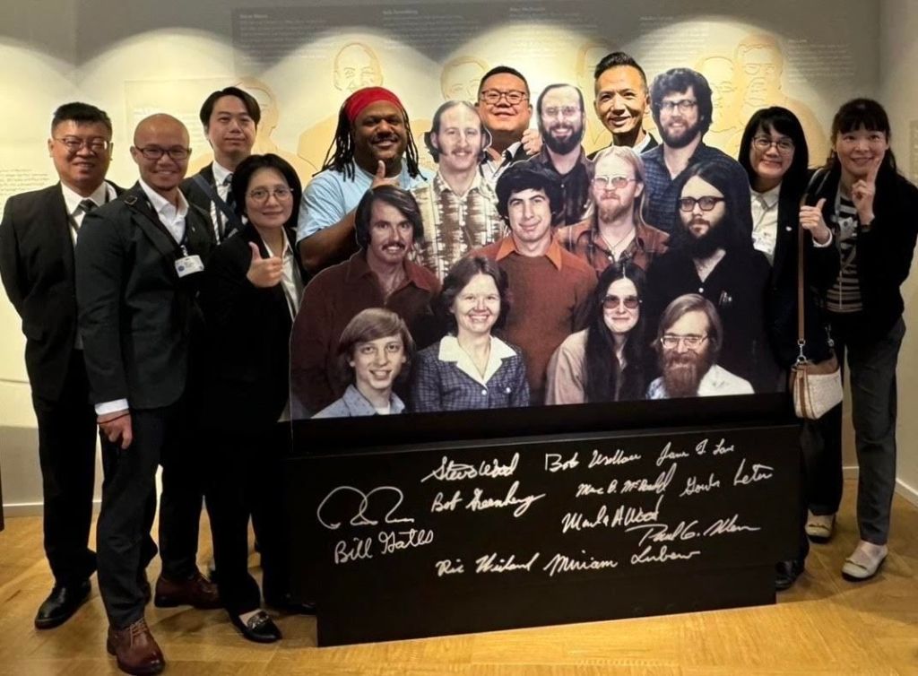現場還有一張照片,提到微軟的前身是由包含比爾蓋茲在內的11個人,於1975年在花蓮市的另一個姊妹市阿布奎基(Albuquerque)創建BASIC小組,進而發展成為今日數萬名員工的跨國軟體企業,有趣的巧合,增添本次參訪的話題。