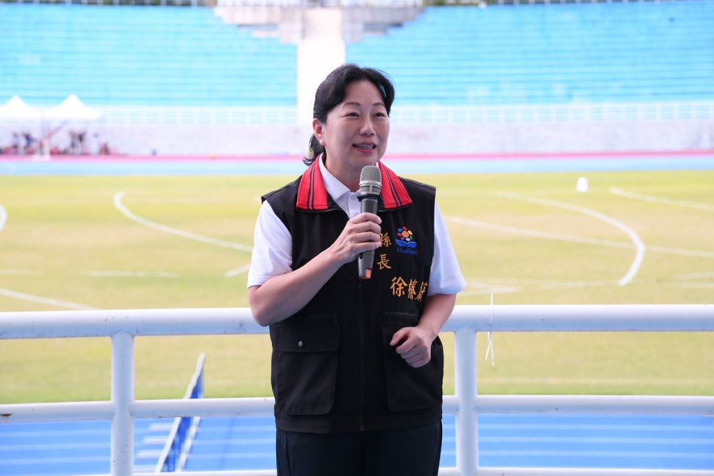 「歡迎大家來到花蓮!」,縣長徐榛蔚感謝中華民國田徑協會,非常榮幸讓花蓮承辦這次全國田徑錦標賽。花蓮擁有好山好水與清新的環境,歡迎全國各縣市參賽選手到花蓮參加體育盛事,同時感受花蓮全方位的文化與魅力,預祝每位選手都能勇奪佳績。