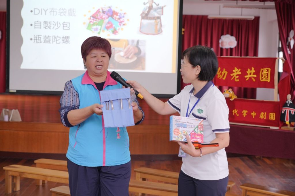 此外,小朋友對於爺奶的童年玩具如陀螺、布袋戲和沙包充滿好奇,並興奮地DIY瓶蓋陀螺和小沙包。這些活動讓大手牽小手,呈現三代同堂的幸福景象,也展現了吉安鄉多代共融、幸福融洽的社會風貌。貼心的游鄉長特準備了現代版智慧童玩「七巧板」贈送給孩子們,回家跟祖父母共同研擬促進感官刺激親情同樂。