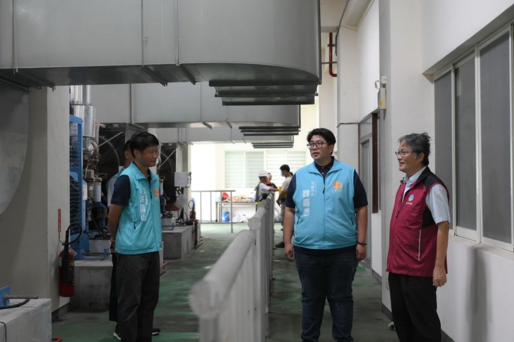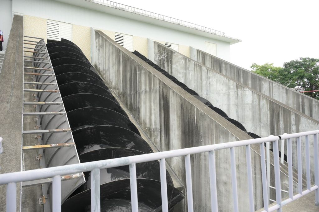 輕度颱風康芮強度增強,有機會轉為中颱,帶來強勁風雨。為嚴防豪大雨造成積淹水情形,魏嘉彥市長今天下午陪同九河分署王國樑分署長,會同市公所工程隊長洪國山、建設課長徐國城以及縣政府水利科等人員,前往國強抽水站進行視察。該站共有3座螺旋機組,單座每秒抽水量達4公噸,3座全開每秒可抽水12公噸。