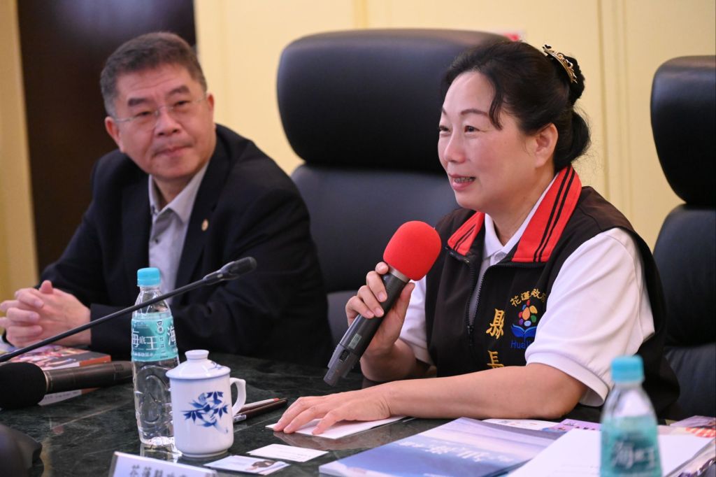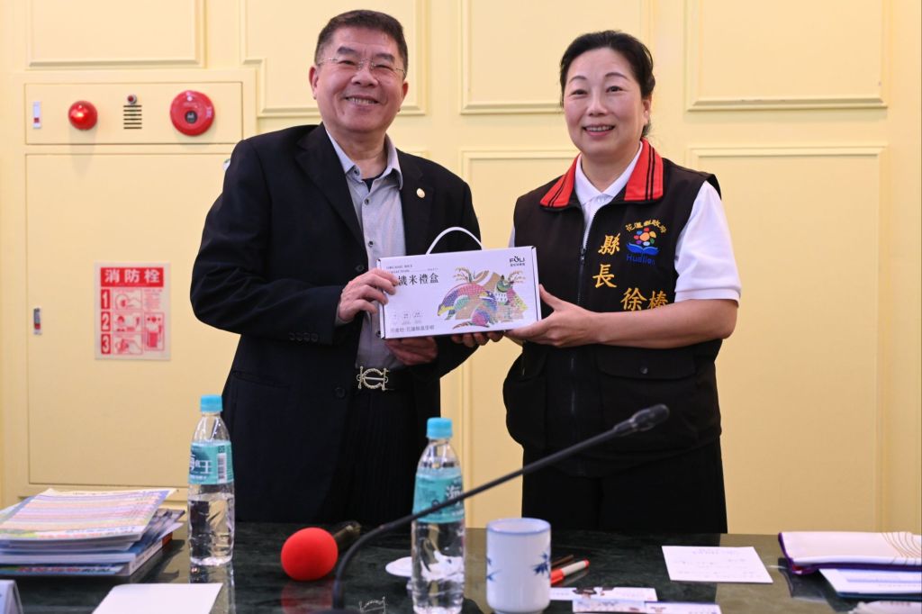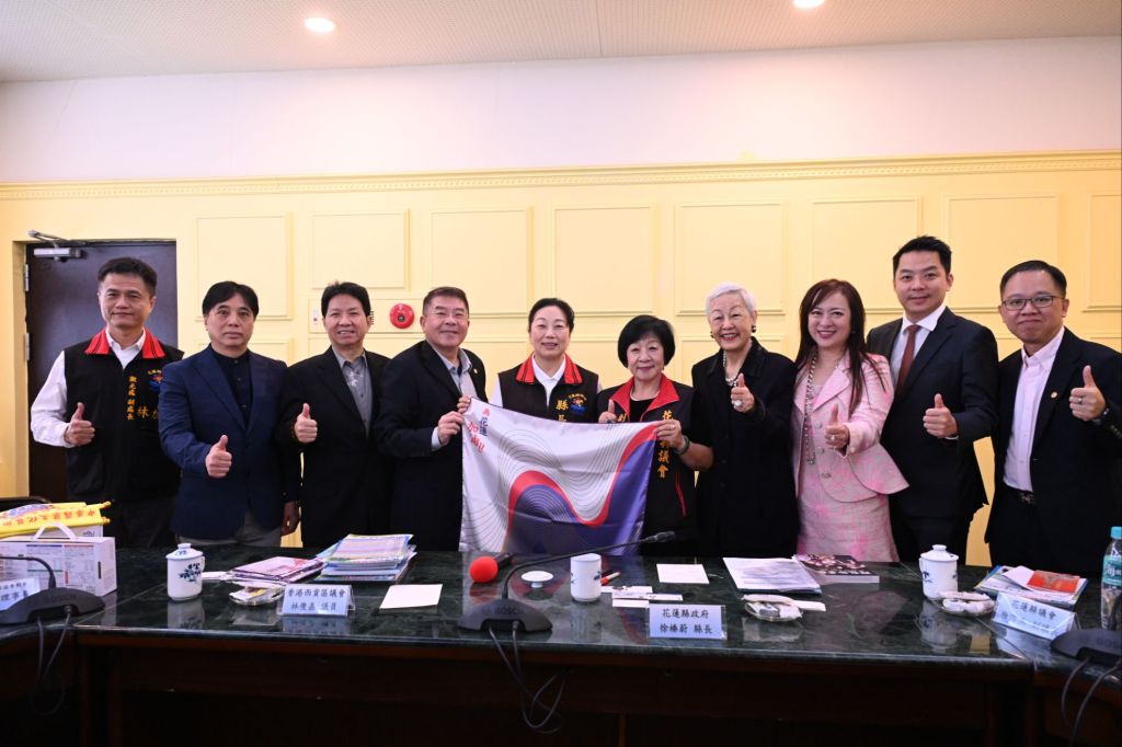 喜迎來自香港的多位議員及貴賓們,縣長徐榛蔚榮幸地表示,很開心能夠親自接待大家,感謝大家特別來到花蓮進行考察交流,也感謝臺灣女企業家協會創會理事長馬愛珍對臺灣的貢獻;深愛著花蓮的徐縣長也分享道,位於臺灣東岸的花蓮縣,不僅是全臺土地面積最大的城市,橫跨西岸六個縣市,亦是全臺擁有最長海岸線的城市,全長延綿約一七五公里,雄偉壯闊的山海景觀,讓花蓮彷彿是全民的運動場、健身房,相當值得香港朋友買張來回機票直達花蓮走走逛逛。