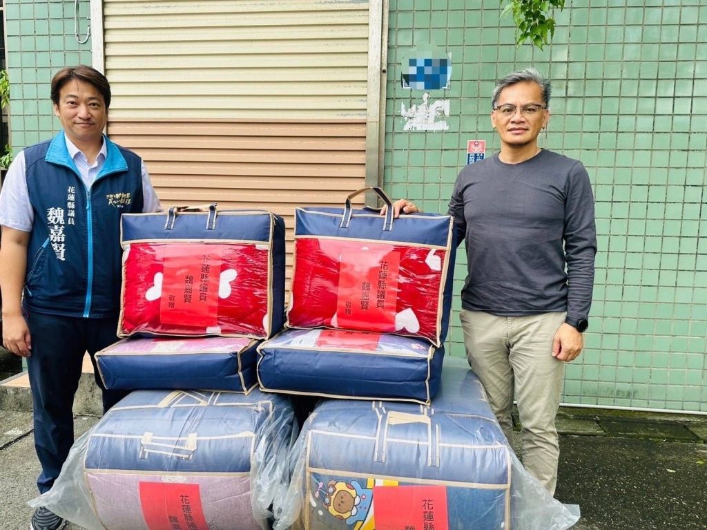 花蓮縣議員魏嘉賢與簡智隆攜手愛花蓮基金會共同前往紅葉村慰問受災居民,並捐贈20條棉被,由萬榮鄉老人會理事長黃德誠(退休校長)協助發放,為部落長者送上溫暖與支持。魏嘉賢議員表示:「在天氣轉冷之際,希望這些棉被能為長者和受災家庭帶來一絲溫暖,讓他們感受到大家的關懷。」