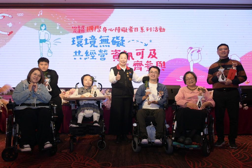 為感謝在身心障礙服務領域辛勤耕耘的跨專業服務人員,並表彰身心障礙者優秀表現,花蓮縣政府今(1)日在美侖大飯店舉辦「113年度花蓮縣國際身心障礙者日跨專業服務績優人員及傑出身心障礙者表揚典禮」縣長徐榛蔚親自出席表揚肯定25位跨專業服務績優人員及5位傑出身心障礙者,透過他們的成就和榜樣,激勵著更多人勇敢面對生活中的困難。