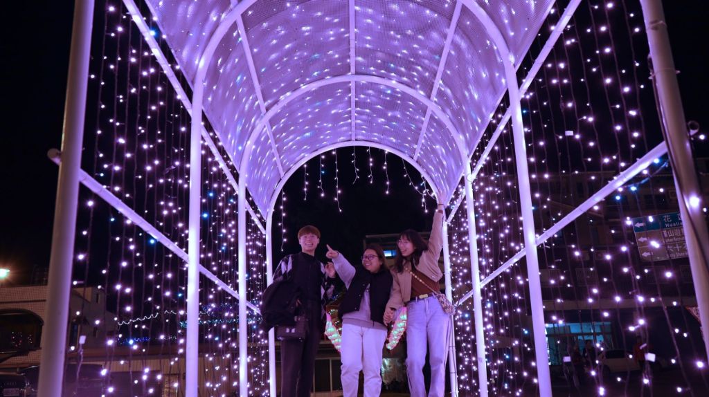 富里火車站前藝文公園所布置的燈飾,結合車站旁的蓮花池,營造出如詩如畫的意境,象徵清淨與希望。民眾可以漫步於公園步道,感受夜晚燈光在水面倒映的靜謐之美。綠光草地公園則打造了流光溢彩的光影長廊,吸引遊客駐足欣賞與拍照。富里鄉公所也特別邀請鄉親和遊客多多利用公園周邊的步道,進行散步或晨間運動,不僅可以欣賞美麗的燈飾,還能享受富里清新的空氣與自然景致。蓮花池旁的涼亭更是絕佳的休憩場所,適合全家人一起來走走看看。