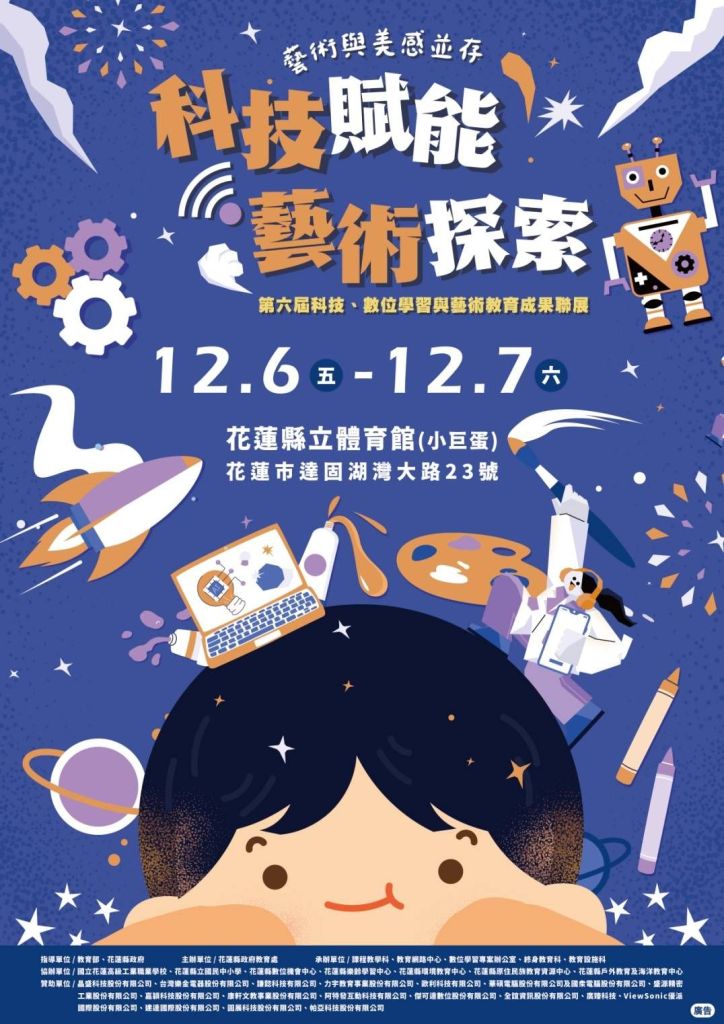 為此,花蓮縣政府訂於113年12月6日(五)及7日(六)於縣立體育館(小巨蛋)辦理「第六屆科技數位學習與藝術教育成果聯展」以「創新與美感、「科技賦能」展示學校跨域學習的多元成果;本次館內共規劃六大體驗專區:科技教育專區、藝術深耕專區、高中職專區、數位機會中心(DOC)專區、樂齡學習中心專區及企業單位專區,超過80攤的主題攤位,呈現科技與數位多元的教育風貌;每個攤位均提供互動式體驗活動、搭配體驗(闖關)卡及豐富摸彩獎品,可預期體驗人潮的空前盛況。
