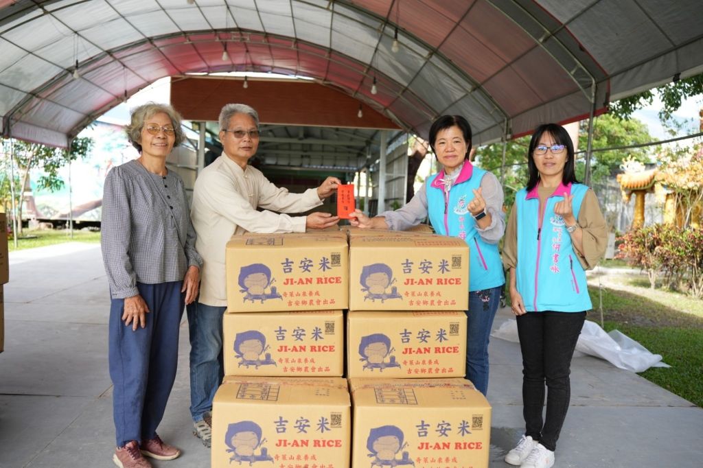 歲末年終之際,也是弱勢家戶如何過好年節的憂心階段,謝謝吉安鄉天竺山金龍寺與玄慧堂道德修心會攜手捐贈平安白米,共計2,850斤,儲存弱勢家庭年節前關懷的量能。鄉長游淑貞各自到場親頒感謝狀,感謝在地宮廟及公益團體長期投入的捐助行動,並表示鄉公所會透過物資捐贈平台快速發放,確保物資速發送達家戶嘗鮮的期限,也落實救助慰問迅速到位。