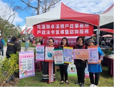 為了深入推廣「165全民識詐」、「線上申辦戶籍登記」、「人籍合一」、「人口政策」、「原住民姓名得單列原住民族文字」及其他便民服務措施,卓溪戶政事務所結合鄉公所,於113年度卓溪鄉Masuhaulus文化活動暨苦茶節、部落健走在地農夫黑熊市集,及山里部落113年苧麻節暨傳統技藝活動中,設立宣導攤位,舉辦有獎徵答與諮詢服務。