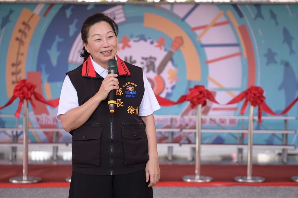 北濱國小校長羅彣玢致詞時感謝縣長徐榛蔚及立法委員傅崐萁對校舍重建的全力支持,回顧從舊校舍拆除到新校舍落成的四年歷程,徐縣長多次親臨工地關心工程進度,更補助338萬元內裝經費,確保校舍內外完善,後續將迅速完成內裝招標作業,讓孩子們帶著愉悅的心情進入全新校舍學習。