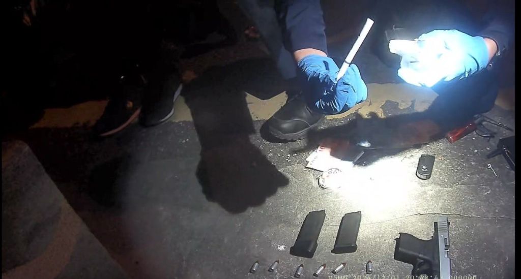 副駕駛劉姓男子,在盤查過程中試圖謊報身份,且手持手提包的動作可疑,引起警方警覺,警方目視檢視時發現槍枝握把外露,隨即將嫌犯壓制在地並實施逮捕。現場查獲改造手槍、子彈,二級毒品安非他命以及吸食器。全案依《槍砲彈藥刀械管制條例》及《毒品危害防制條例》移送法辦。
