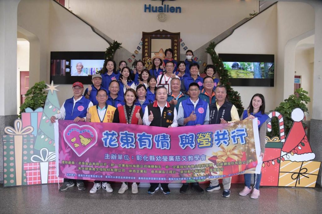 今年的物資捐贈活動獲得來自各界的積極支持與回應,主辦單位彰化縣幼瑩廣慈文教學會台南分會,協辦單位包括台南市博愛菁莪愛心會、台南市永康區塩興里、台南市安南區鹽田里、台南市安平康復之家、台南市新佶企業社、台南市信用鋼品工程行等,還有贊助企業如台南市奇美食品有限公司、台南統一企業股份有限公司、米大師美食生技股份有限公司、欣新網股份有限公司、中醫師公會蔡明勳中醫診所及彰化縣猩猩商行等,皆為本次活動提供了強有力的支持,除捐贈1,000份聖誕禮物袋(內含文具用品、飲料、各類點心及現金200元),另提供兒童及成人尿布、暖暖包及玩具等物資市價約60萬元予花蓮縣幸福實物銀行統籌運用,嘉惠本縣弱勢鄉親,讓溫暖傳遍社會各個角落。