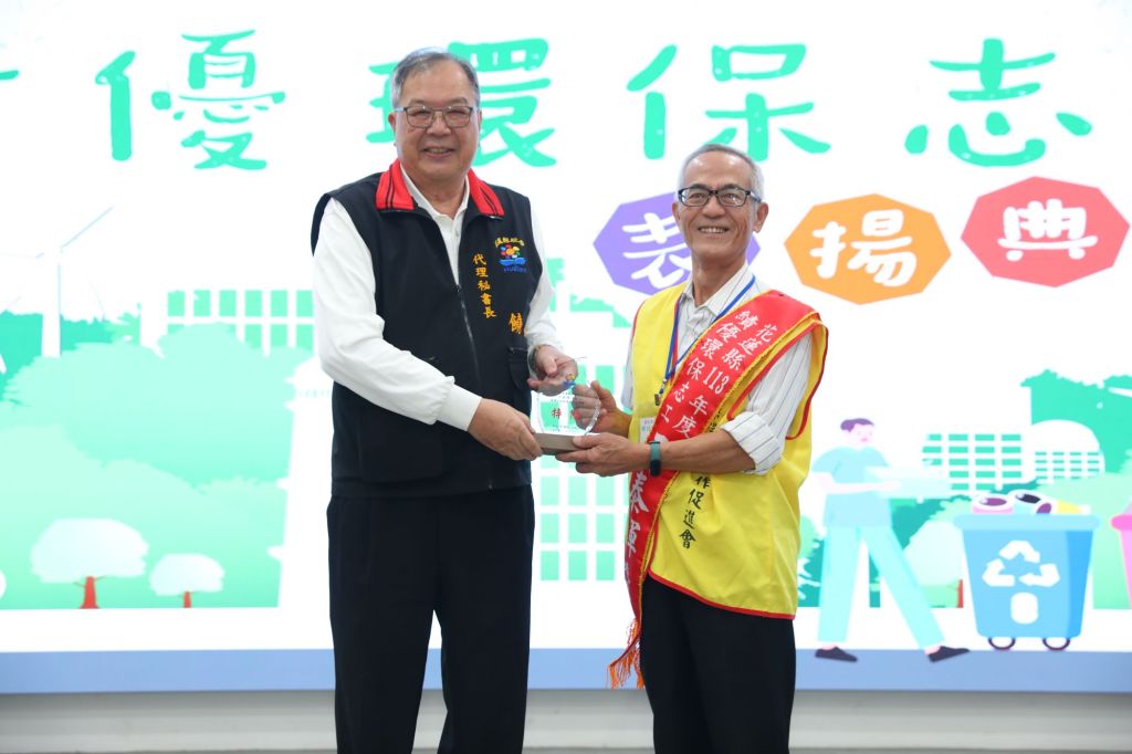 今年度花蓮環保局特別聘請評審委員,經由志工隊的自我推薦以及檢視志工隊歷年的成績,從中篩選出10組績優環保志工團隊以及50位績優環保志工,值得一提的是,吉安鄉光華城鄉發展協會的環保志工周鴻先生,以98歲高齡獲得環保志工個人優等,成為環保樂活志工的最佳典範。