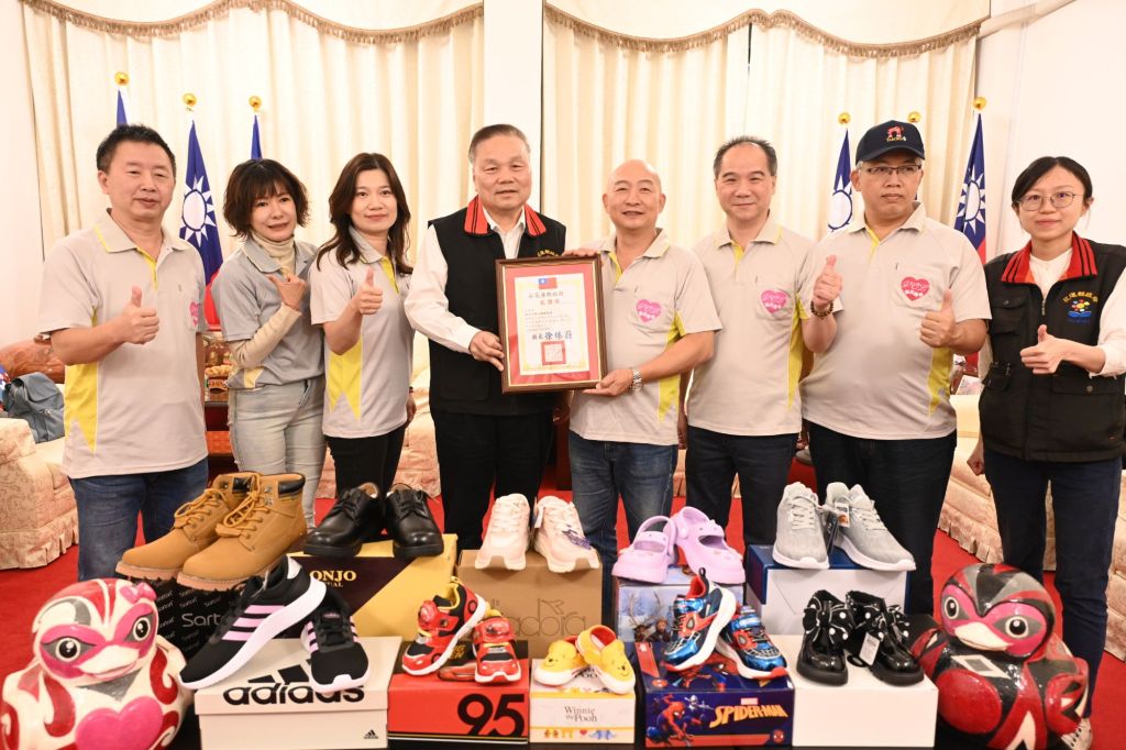 花蓮縣政府今(10)日舉行「新北市樂心關懷協會鞋品券捐贈儀式」,由協會理事長黃世和、創會理事長林陽晉等共同捐贈面值新台幣800元鞋品兌換券380張,總值超過新臺幣30萬元,副縣長顏新章代表花蓮縣政府受贈並回饋感謝狀,感謝協會為花蓮弱勢兒少在寒冬中獻上愛心。