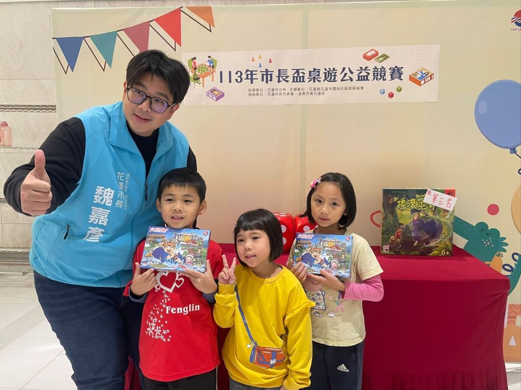 花蓮市公所今(15)日下午與國裕社區發展協會在遠百花蓮店共同舉辦「113年市長盃桌遊公益競賽」,大家透過各種桌遊遊戲競技,倡導正當休閒活動的理念,也讓孩子跟家長放下手中的3C產品,一起用桌遊腦力激盪,度過美好的親子時光。魏嘉彥市長表示,藉由這次市長盃桌遊競賽的舉辦,要向許多大小朋友呼籲,培養健康正當的休閒活動,不僅能鍛鍊智力發展,也適合訓練表達能力,跟著孩子一起挑選經典的桌遊遊玩,絕對比用3C產品玩遊戲、追劇更能促進親子感情。