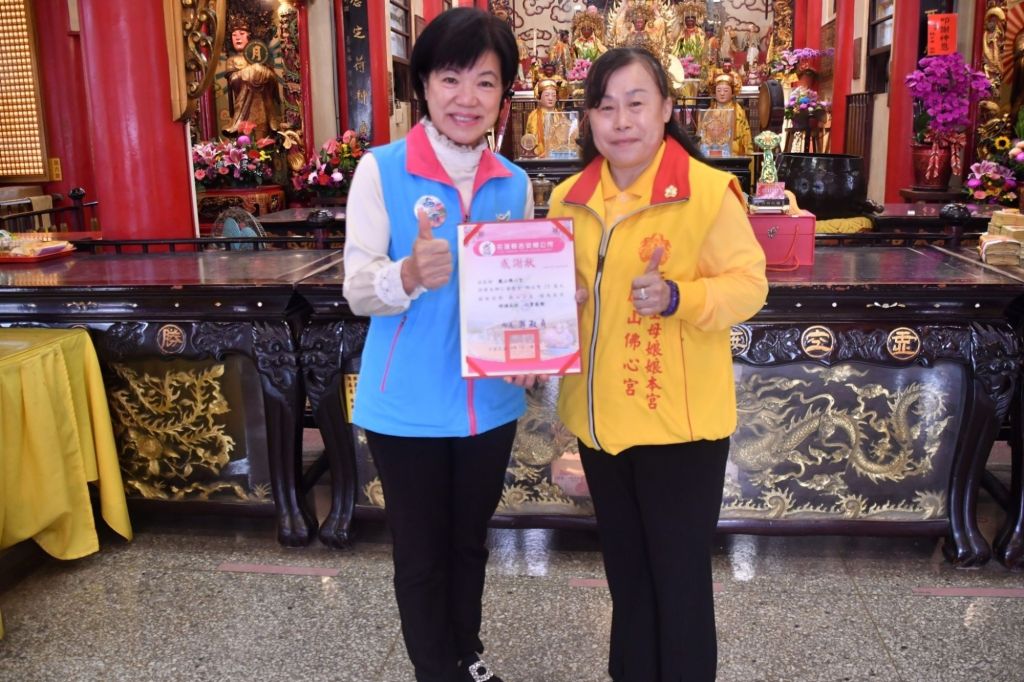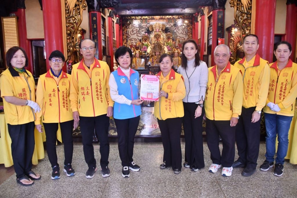 鄉長游淑貞感謝宮廟長期帶來心靈安定的力量,尤其近年來吉安鄉推行節能減碳政策,大家都紛紛相助改善環保金爐、配合環保局使用鞭炮機設備,共力發揚宗教守護推展力,年年認養平安路燈千盞護鄉親,救世慈懷協力共築溫馨平安的祥和社會。