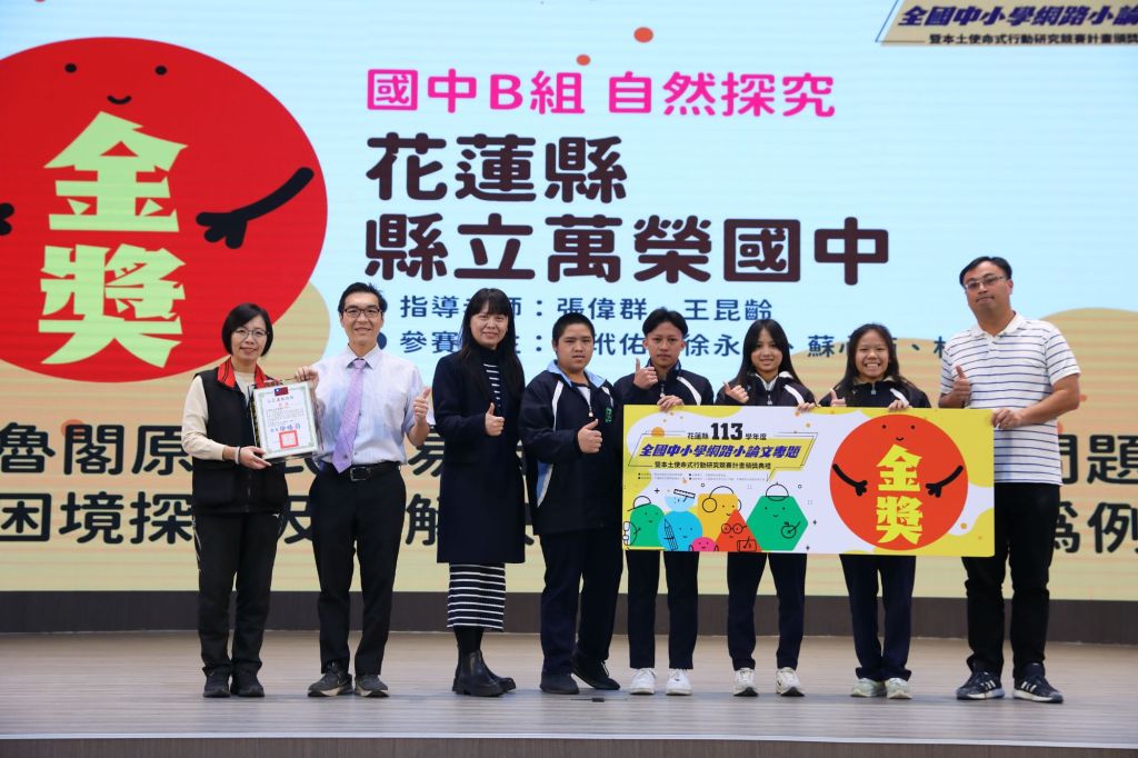 此競賽對於培育在地學子貢獻良多,也因為有這些辛勤教師、耕耘學子,小論文競賽才能持續呼應在地聲音,追尋永續之路。本年度競賽評審標準強調原創性、創新及延續性,從眾多隊伍中選出30件金獎作品,其中包含國中12件、國小18件。本競賽除五類探究組別之外,去年起加入議題延伸組,參賽隊伍對往年的研究議題進一步探究,讓小論文不只有發想,而能加深加廣,甚至進一步的落實在我們的日常生活,幫助我們解決問題。