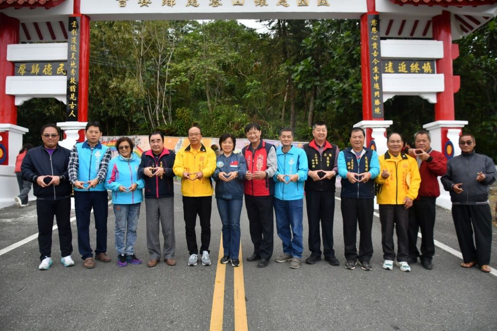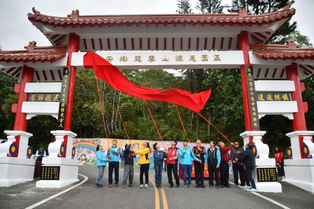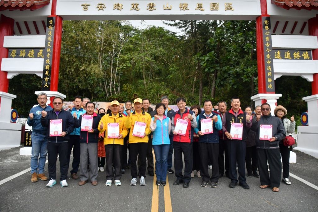 慈雲山懷恩園區入口牌樓因0403強震損毀,在公部門資源受限下,鄉長游淑貞藉助仁里萬善廟、聖地慈惠堂總堂、勝安宮、花蓮聖能宮、吉安保勝宮、聖帝宮、福境宮、福玄堂等八家宮廟與聯化科技共九個單位,共同籌集三十八萬餘元重啟修繕工程,於今(18)日舉行完工揭牌儀式,偕同在地村長及宮廟人員祈福祝禱,以圓滿慎終追遠生命禮儀。游淑貞特頒贈感謝狀致意,感謝協力守護未來每一天,前往生命禮儀園區祭祀的鄉親與日常休憩運動經過的人車都能安全。