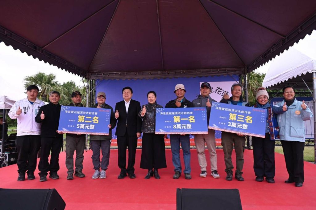 眾所矚目由花蓮縣政府特與農業部林業及自然保育署共同主辦,並邀請經濟部水利署第九河川分署協辦的「海是愛花蓮-漂流木創作賽」,歷經熱烈收件,收到本縣藝術創作者共69件報名,最終遴選出以下兩組入選藝術家,共計41位。縣長徐榛蔚今(22)日前往頒獎,經民眾投票決選後,前三名分別為林易泰、東億文創工作室(林麗棻)、豆子木作(吳國聯),歡迎鄉親踴躍前往欣賞。