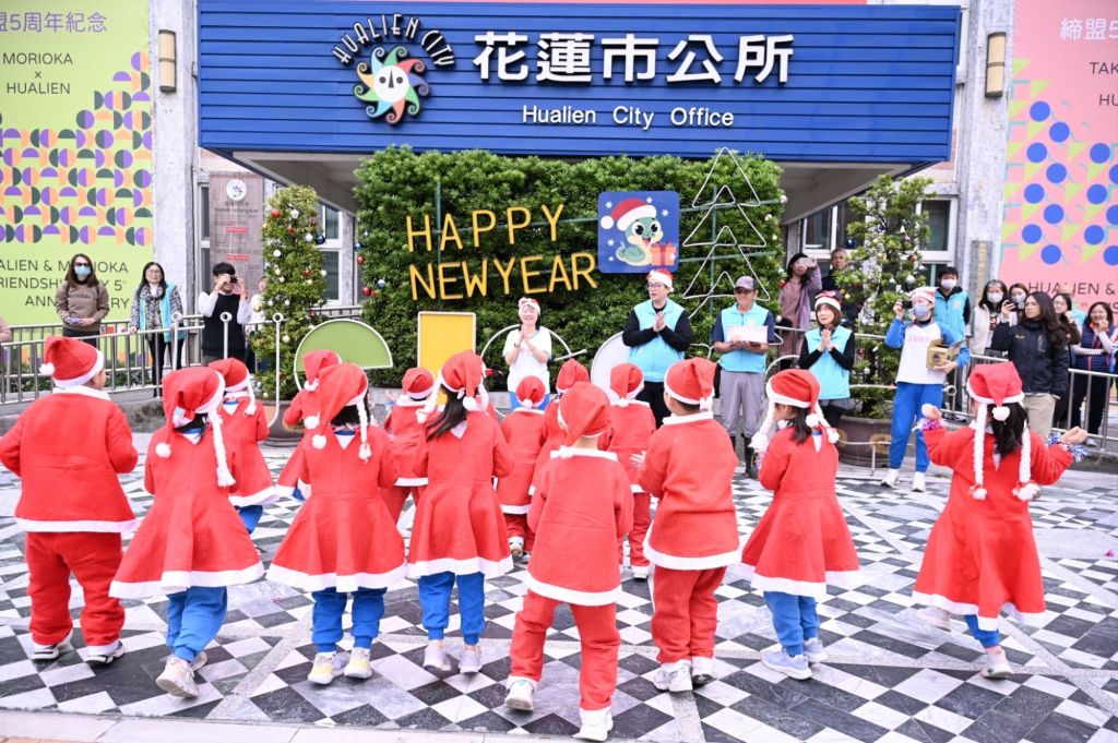 聖誕節將至,花蓮市公所今日洋溢著濃厚的節慶氣氛,來自天使幼兒園、佳姿幼兒園的孩子們與黎明教養院的院生,都到市公所報佳音,以應景的歌聲,為市公所增添節日的溫馨與喜悅。市長魏嘉彥也發送糖果,並祝他們快樂成長,聖誕節快樂。