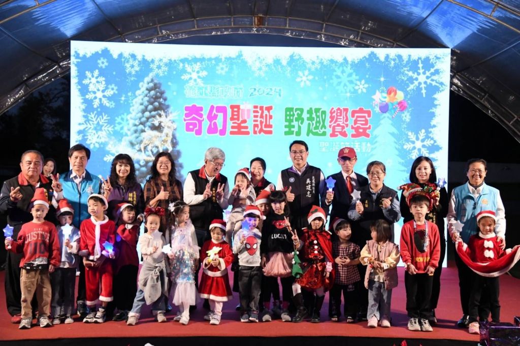 如童話般夢幻仙境的「奇幻聖誕 野趣饗宴」於今(25)日花蓮縣婦幼親創園區大草坪登場,現場打造成「偽露營」風格的聖誕派對,還有吸睛的表演加上豐富的市集攤位,吸引許多家長帶著小寶貝們前來同樂,花蓮縣長徐榛蔚驚喜現身活動現場發放星星螢光棒,讓大小朋友開心簇擁搶拿,立法委員傅崐萁服務處主任邱惠敏、花蓮縣議員韓林梅、林則葹、楊華美、吳建志等人也到場,大夥兒在歡笑中度過快樂聖誕節!