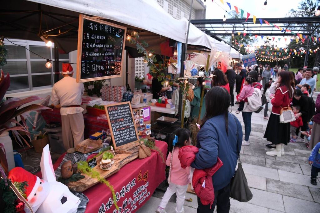 活動的最大亮點之一,是位於園區大草坪司令台左側的露營派對區。這裡將精心打造五個風格各異的聖誕裝飾帳篷,每一個帳篷外圍都以閃耀的聖誕燈串點綴,散發著濃厚的節日氛圍。而帳篷內部則設置充滿聖誕元素的掛畫與溫暖柔軟的毯子,營造出一個驚喜連連的童話般露營場景,讓每位參加者在這片聖誕世界中感受到彷彿置身於夢幻國度的奇妙體驗。大草坪旁的水泥大道則搖身一變,成為充滿自然野趣的露營風味市集。市集的佈置結合帳篷、燈串與木質元素,展現了純樸自然的露營特色。在這片充滿溫馨氛圍的市集中,參加者將有機會享用多樣化的露營風味餐點,並挑選到各式富有特色的商品。漫步其中,無論是購物還是品嘗美食,皆能沉浸在輕鬆愉悅的戶外氛圍中,感受別具一格的市集魅力。