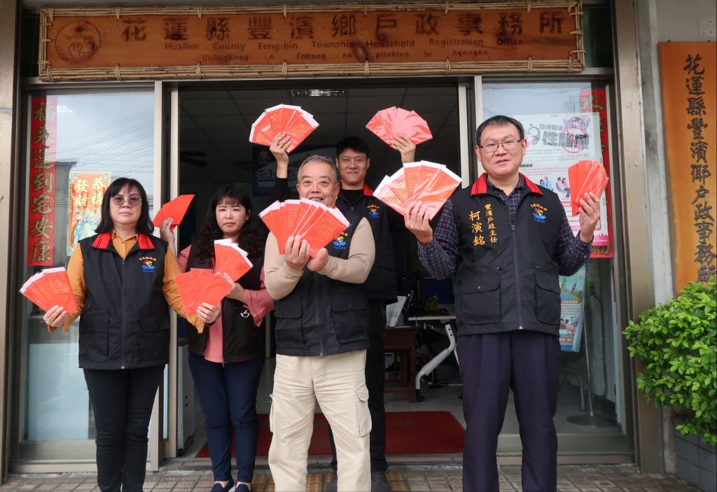 花蓮縣政府與豐濱鄉戶政事務所誠摯邀請鄉親踴躍前來領取紅包袋,共享節慶歡樂與祝福!同時提醒民眾,紅包袋發放期間如需辦理戶政業務,請配合現場服務人員指引。花蓮縣政府將繼續秉持「以民為本」的理念,提供更優質、更貼心的服務,祝大家春節快樂、新年幸福滿滿!