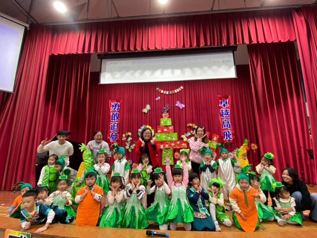 四年級的同學們則化身為可愛的動物,穿著與家人共同製作的服裝,隨著音樂的節奏搖擺,帶來一場精彩的動物狂歡派對;幼兒園的小朋友們也不甘示弱,以青菜為主題,裝扮成一株株可愛的蔬菜,並且用稚嫩的歌聲演唱閩南語歌曲「敖早敖早踅菜市」,展現他們的天真與純真,讓全場充滿了溫暖的氛圍。