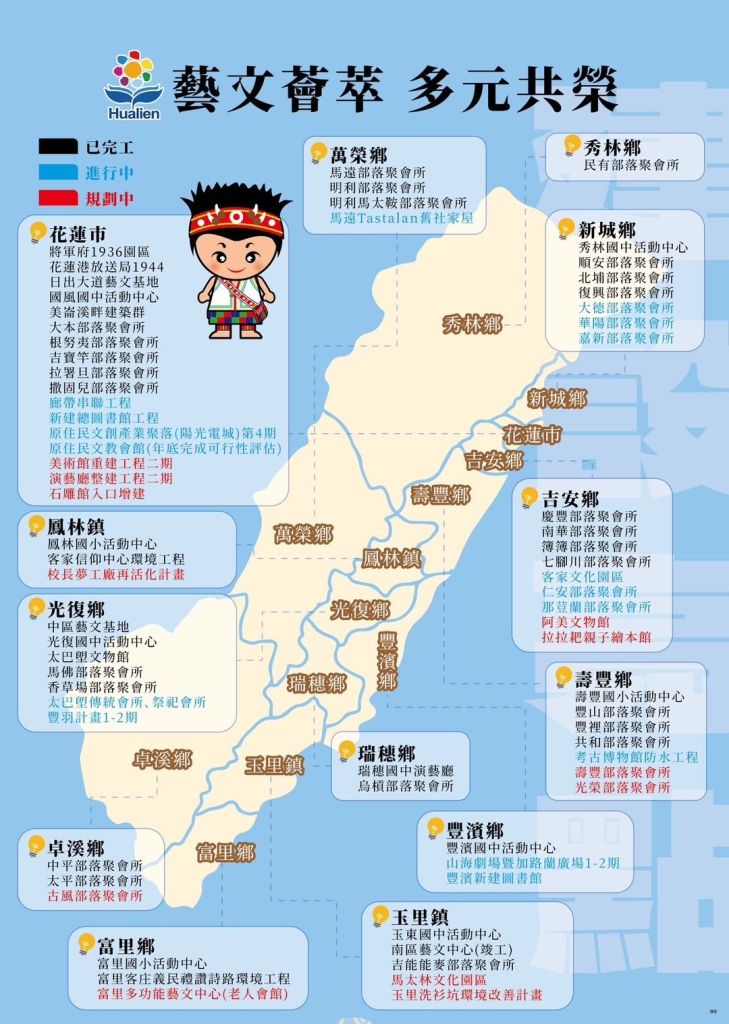 花蓮縣政府展開全面性的規劃,致力於拉近城鄉差距,從北到南,各鄉鎮的群族文化推動各項文化建設,打造客家及原民文化重點建設,同時優化交通,在區域均衡發展上下了不少功夫,提升各區發展,讓花蓮不斷往前,朝向國際文化之都邁進。