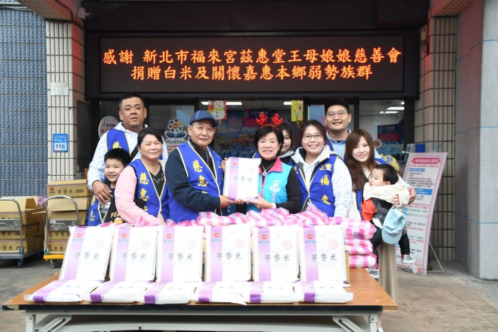 新北市福來宫慈惠堂在母娘信仰慈悲喜捨的感召下,不辭辛勞遠道親運物資前來吉安鄉,捐助白米1325公斤及善款53萬元,在歲末時分將滿滿的愛與實質祝福,親送給吉安鄉境內低收入戶2、3款弱勢家庭,鄉長游淑貞陪同廟方在公所前廣場逐一發放,總發送關懷戶達558戶特殊境遇家庭,在發放同時也帶來年節前火災預防、社會福利申辦說明和政策性宣導內容,期盼用平安關懷開啟嶄新114年的社會溫暖。