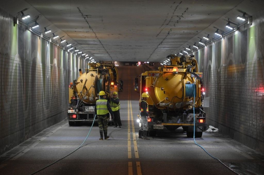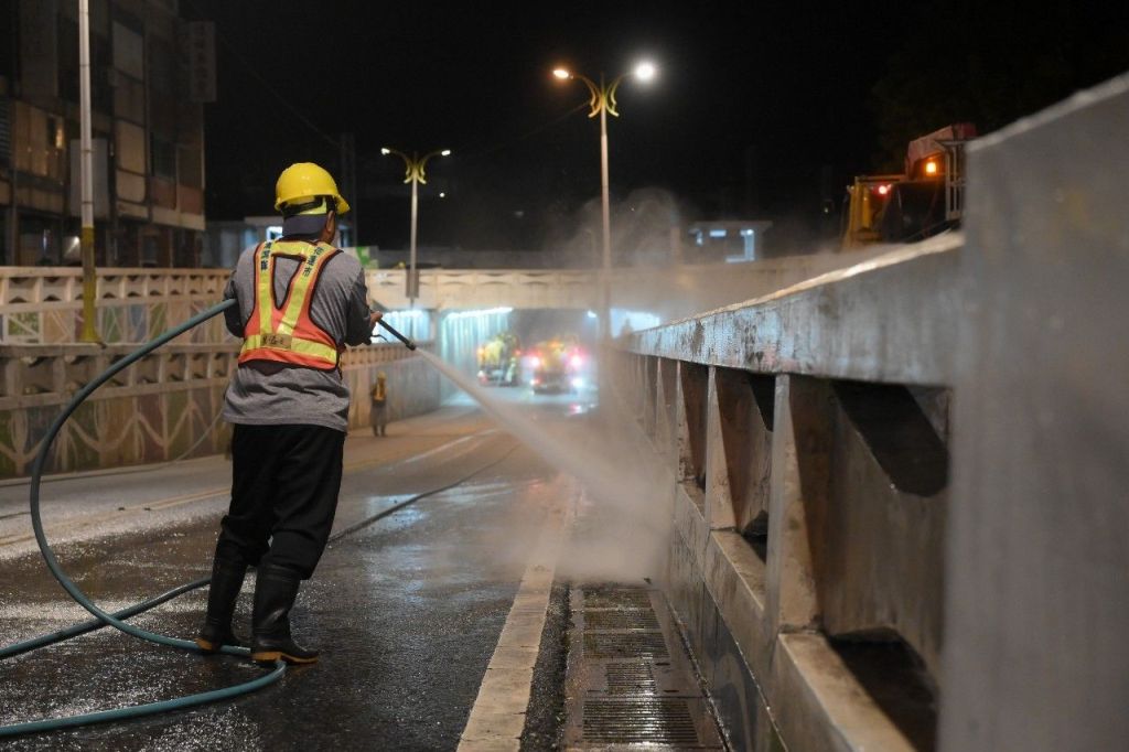 為帶給市民以及觀光客更優質的環境,花蓮市清潔隊自去年12月起,即針對市區公共設施展開清洗作業,繼日前完成北濱外環道清洗作業,3日晚間則在中山地下道執行養護工程。清潔隊動員31名人力、7輛重型車輛,隊長吳慶展全程在場督導作業進行,隊員抓緊時間陸續完成牆面清洗、兩側邊溝疏濬以及地面清洗作業,在4日清晨提前恢復通行。