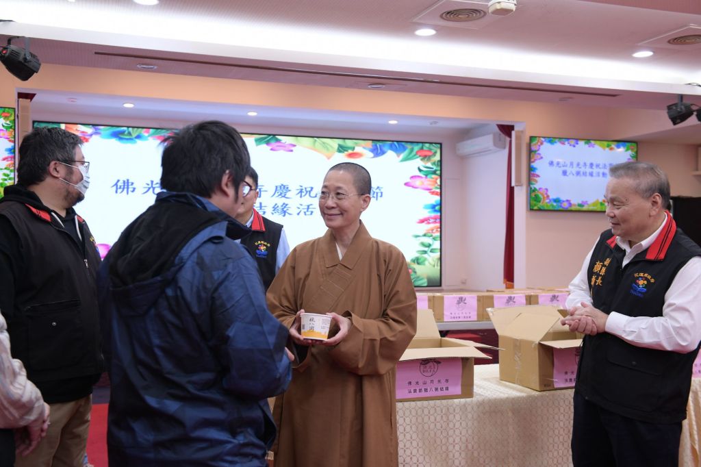縣長徐榛蔚感謝佛光山月光寺每年分享孕育祝福的臘八粥,與花蓮縣政府的同仁結緣,臘八粥所蘊含的豐富寓意,期使同仁滿懷感恩的心品嚐每一口,讓這份溫暖和祝福不斷擴散,更祈求新的一年諸事圓滿。