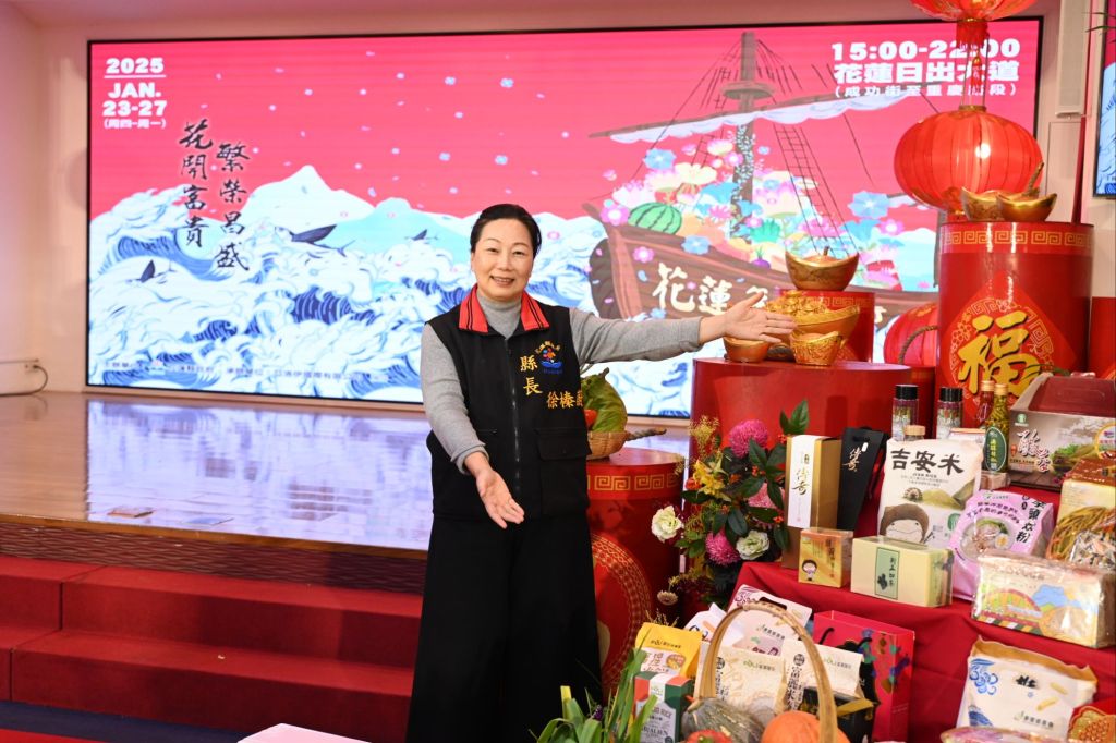 「2025花蓮年貨大街展售活動」於1月23日至1月27日15時至22時為期五天,於花蓮日出大道(重慶路至成功街)澎湃開賣。花蓮縣政府今(9)日於大禮堂舉辦活動宣傳記者會,現場年味濃濃,攤位展示多樣花蓮澎湃年貨,縣長徐榛蔚力推花蓮優質年貨,歡迎鄉親踴躍前往感受花蓮濃厚的過年熱鬧歡樂氛圍。