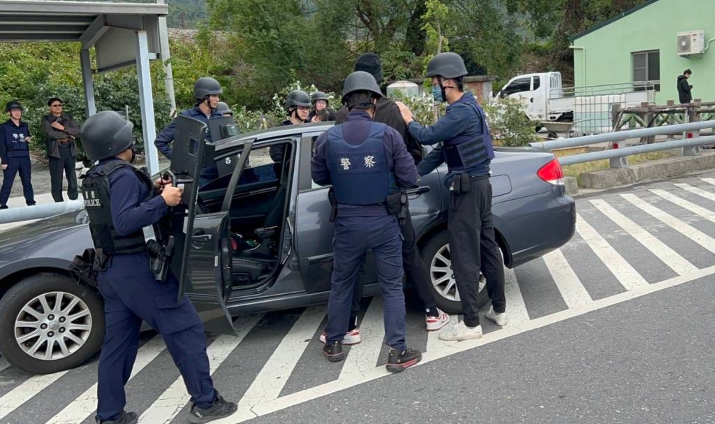 「有搶劫」!關山警察分局勤務指揮中心接獲關山鎮農會信用部報稱「有2名歹徒持槍搶劫,請派員前來處理」!關山派出所接獲通報,隨即趕往並封鎖現場,同時通報偵查人員,並循「三線通報」將狀況轉報副分局長温綮騫,副分局長於現場指揮若定,並聽取報告後下達指令,由偵查人員對職員進行訪查,「勘察採證小組」實施現場採證。隨後依職員所描述歹徒特徵、作案車輛、車號及逃逸方向,通報各分駐(派出)所警力啟動「攔截圍捕」;與此同時,偵查隊專案人員在發現歹徒車輛後,除立即以無線電通報勤務指揮中心外,也尾隨待機。接下來運用車陣、地形及交通管制等方式,順利在臺9線月眉段攔截該部作案車輛,在優勢警力層層包圍下,將車上2名歹徒逮捕上銬,並起出贓(證)物,於採證畢後,圓滿完成此次防搶演練!