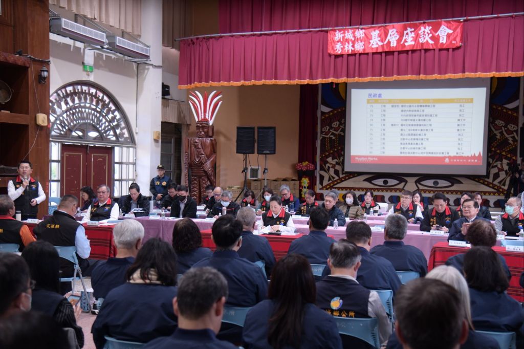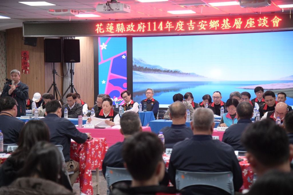 上午首先登場新城鄉及秀林鄉之座談會,下午則是吉安鄉座談會,現場也有反詐、衛生安全健康等政策宣導,村里長發言踴躍,聚焦於防波堤受損、自行車道修繕、柏油路面重鋪、排水溝拓寬、擋土牆改建、火車站內部整建、農路改善、公墓設施、藝文展演空間、社區活動中心重建及耐震補強等改善工程。