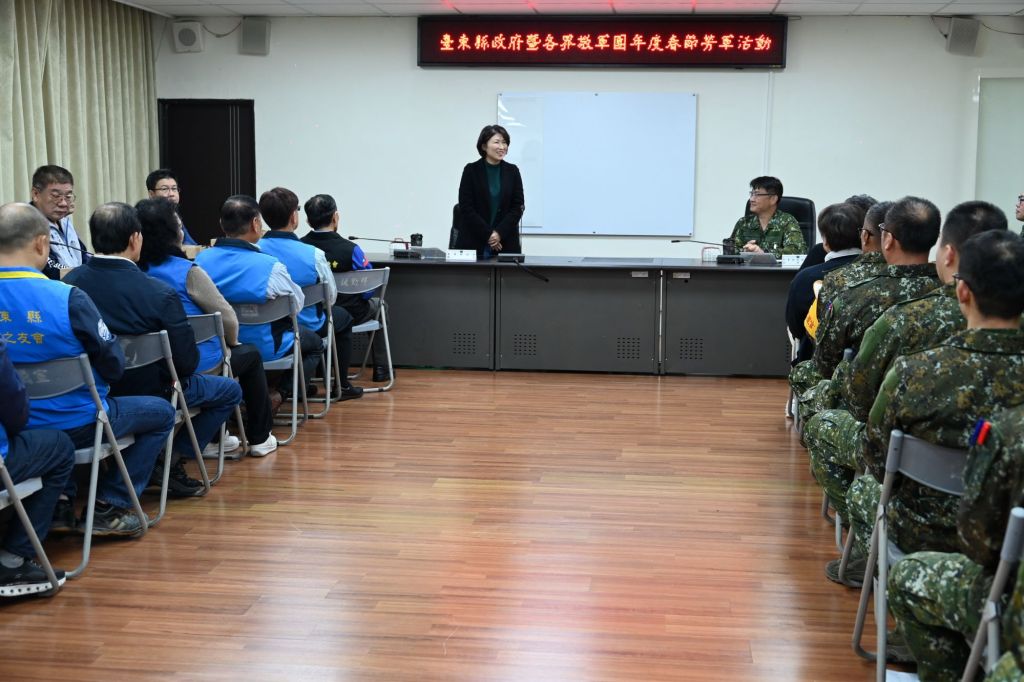 114年農曆蛇年春節將至,為感謝縣內駐軍保國衛民、堅守崗位,維護縣境安全的辛勞,臺東縣政府、臺東縣議會及各界特別於今(15)日組成慰勞團,由縣長饒慶鈴率團,並在民政處長林宏義及軍人服務站長曾仁政等人陪同下,前往空軍第七戰術戰鬥機聯隊、海巡署東部分署、陸軍臺東地區指揮部等單位展開勞軍活動,並致贈春節慰勞金,提前祝賀大家春節佳節愉快。饒慶鈴表示,縣府積極升級縣內醫療、交通等,讓民眾有感,臺東正邁向國際幸福友善宜居的城市;而各部隊則對於縣長及各界慰勉表示感謝。