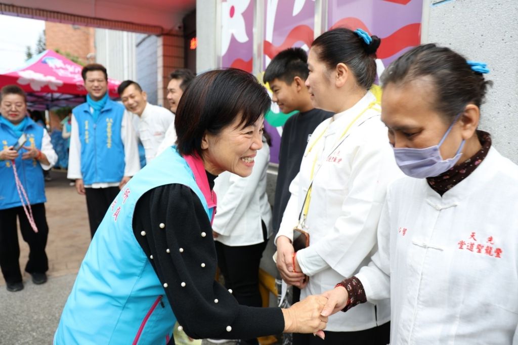 鄉長游淑貞在致詞中提到,台中豐龍聖道堂在0403地震後,也多次前來關懷協助,永遠銘記感謝。另外,也向來賓詳細說明近年吉安鄉中低收入戶人數成功遞減脫貧,更鼓勵大家共同努力爭取工作權,帶來家中收入解決生活困境。