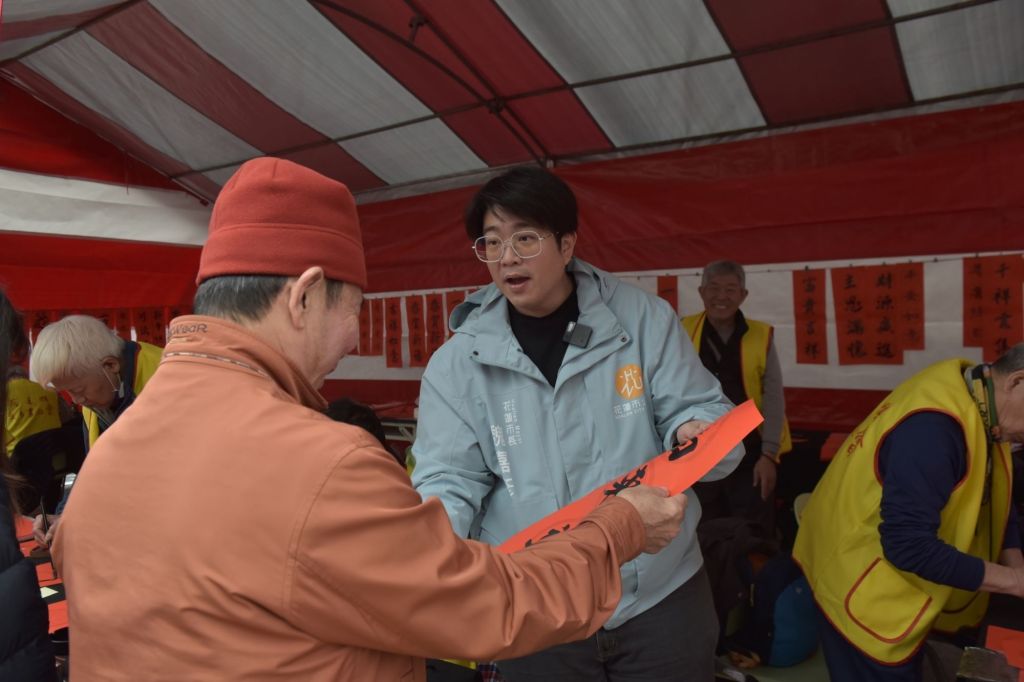 市長魏嘉彥也向現場民眾拜早年,並感謝花蓮縣長青書畫會,每年都在過年前準備賀年春聯贈予民眾,不僅展現書法藝術之美,更以各式書法字體寫出民眾喜愛的吉祥話,一筆一劃透過手寫的溫度將福氣與喜氣傳遞給花蓮市民。