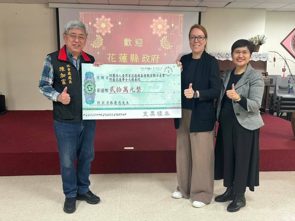 由於行程安排,張慶忠先生未能親臨捐贈儀式,特委託花蓮縣政府社會處代為轉交這份暖心善款。爰114年1月21日,由花蓮縣政府社會處處長陳加富親自前往畢士大教養院,代表張慶忠先生將捐款交予院方。陳加富處長也勉勵院方,繼續秉持創院初衷,不斷提升服務品質,為院生創造更多成長的可能性,並實現社會共融的道路上發揮更大的影響力。